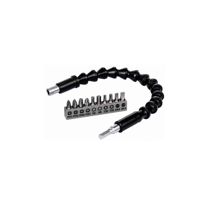 Pack d’embouts de vissage Bosch (2 608 522 377) de 11 pièces avec rallonge flexible en plastique pour visseuse.