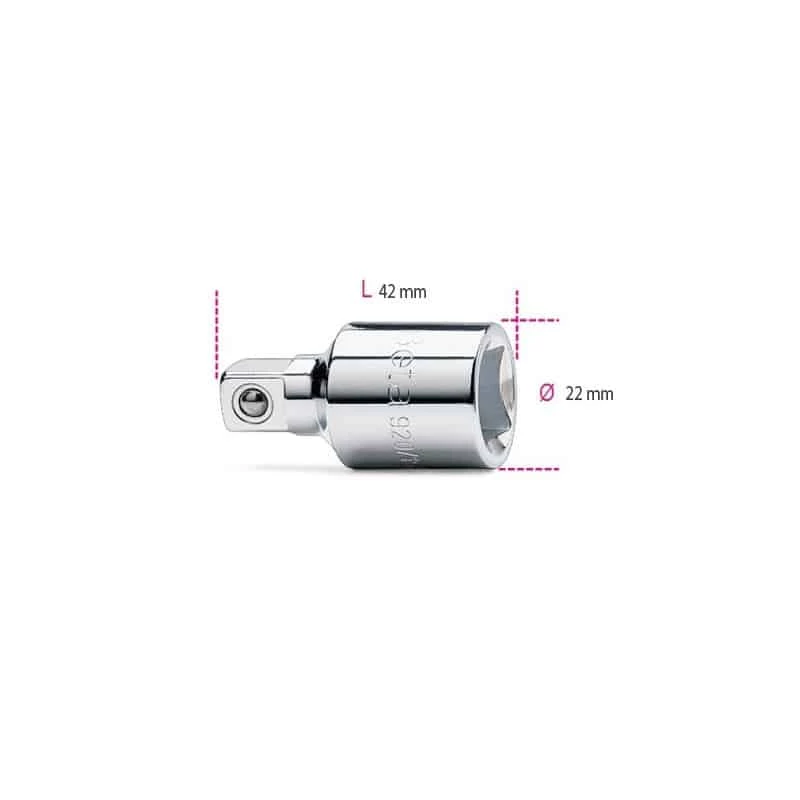Réducteur carré femelle 1/2″ et mâle 3/8″, longueur 42 mm et diamètre 22 mm. Pour votre sécurité, toujours appliquer la force de serrage régulièrement et progressivement afin d’éviter la rupture et de se protéger contre un possible accident.