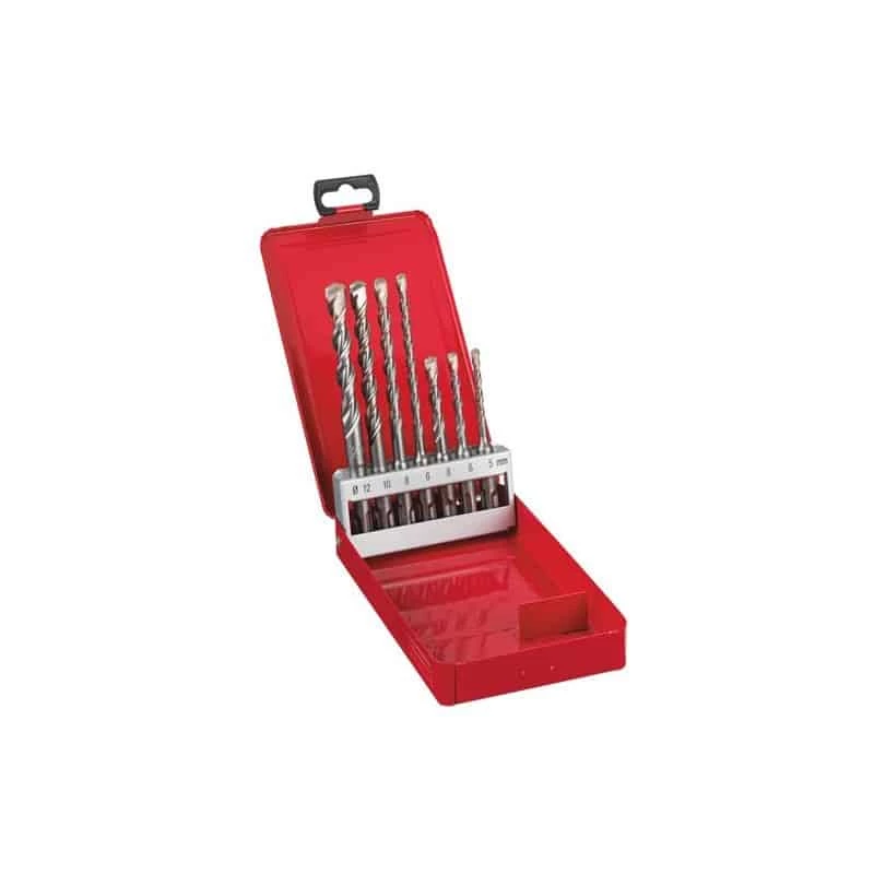 Coffret métal contenant 7 forets béton SDS-Plus.