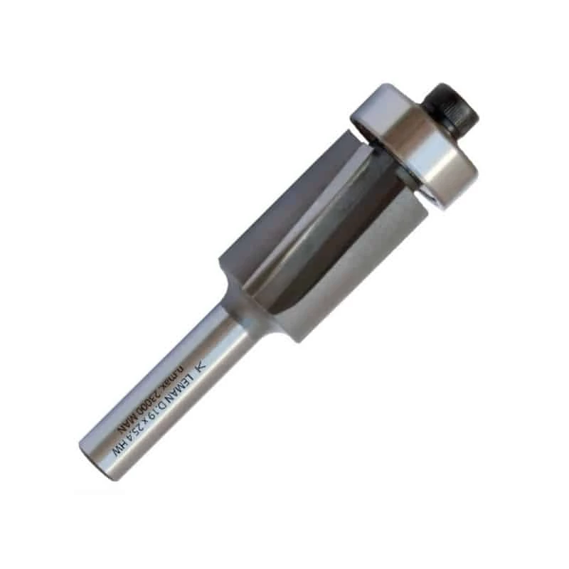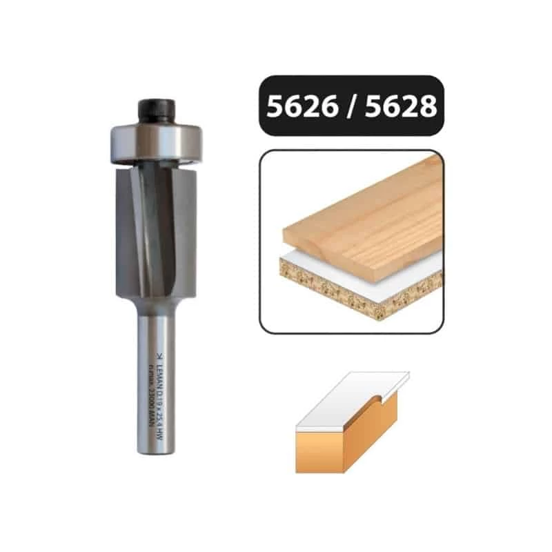 Mèche 2 coupes. Affleurage des chants dans les bois durs, panneaux mélaminés et stratifiés, en suivant un gabarit. Pour une finition parfaite.